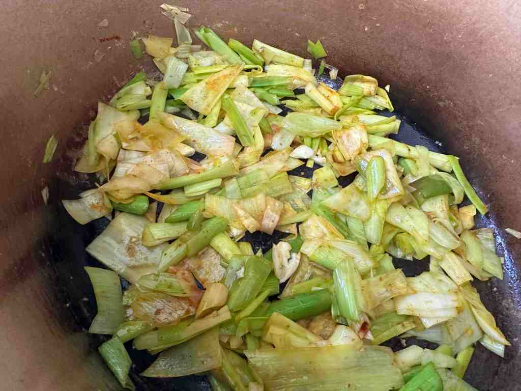 Because it’s a good idea to toast spices, I like to add them here, so they toast, and cook with the leeks.