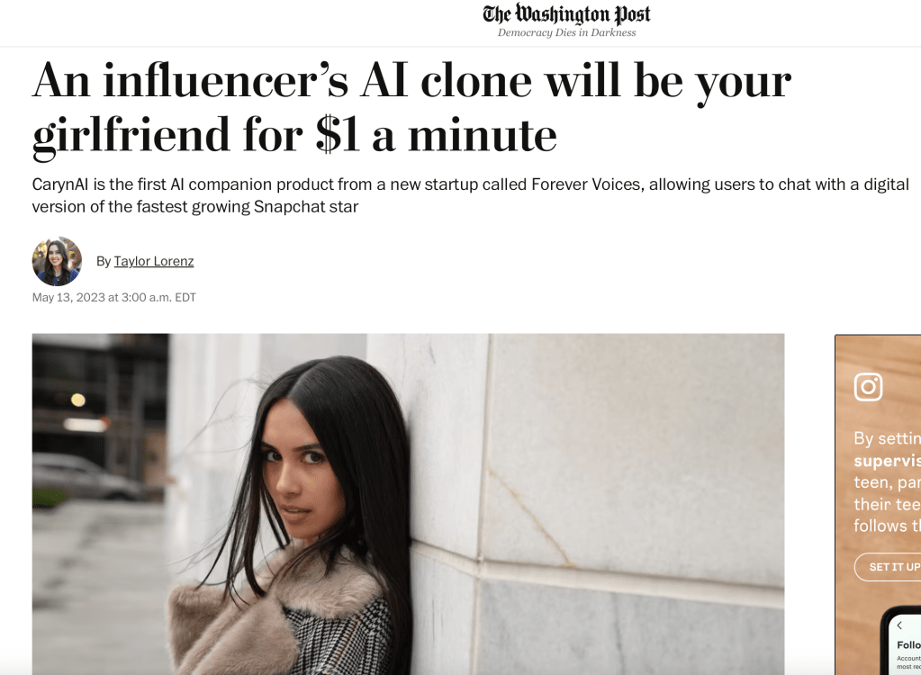 Hollywood writers are on strike, b/c AI is obviously going to write scripts, but then The Taos News had an AI stock photo published, THIS WEEK, and I just read an article, THIS MORNING, about an AI girlfriend, who’s raking in (actual) money.
