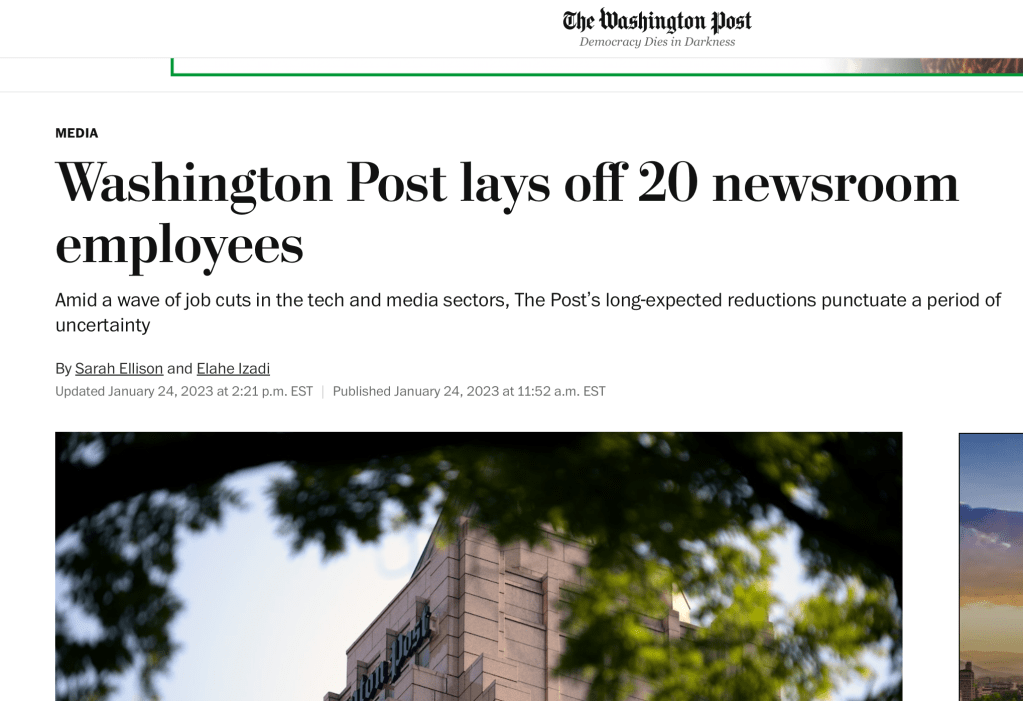 The layoff reports are in the news. The very news that is the source of the employment now being cut.
