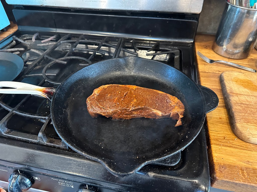 On Saturday, I got a 1 lb NY Strip Sirloin at Albertsons for $14.99, which was enough meat for me, Jessie, and then Theo cleaned up the prodigious leftovers when he came home from camp.