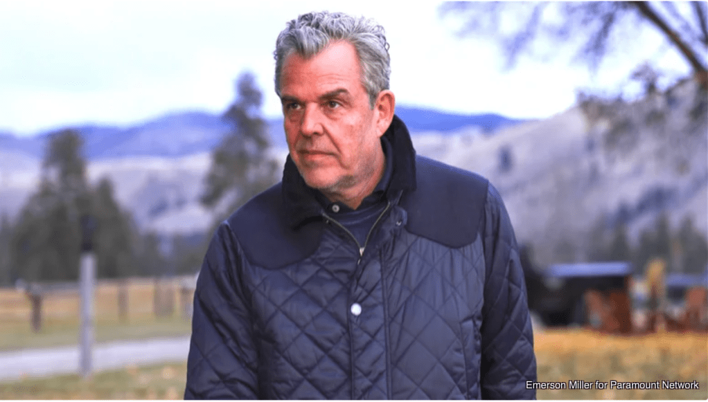 English actor Danny Huston playing a nefarious city-dweller/ unscrupulous land developer in Yellowstone. Image courtesy of Looper